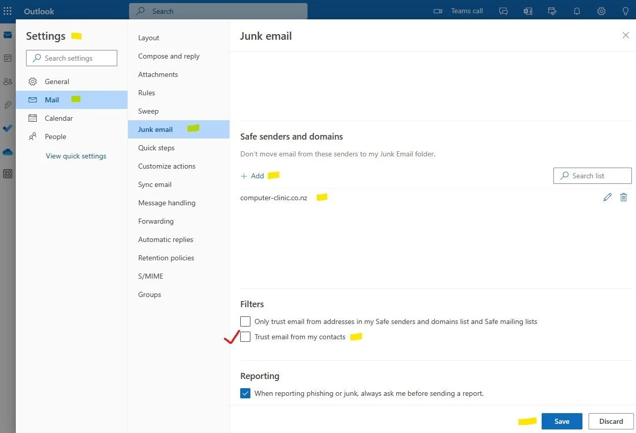 In your own Outlook system, you can manually +Add companies to your own safe senders list. Again, this is not because there is something wrong with your email system or setup, it is purely because you wish to have these emails by-pass spam filters which is a risk you are prepared to accept. To do this:-