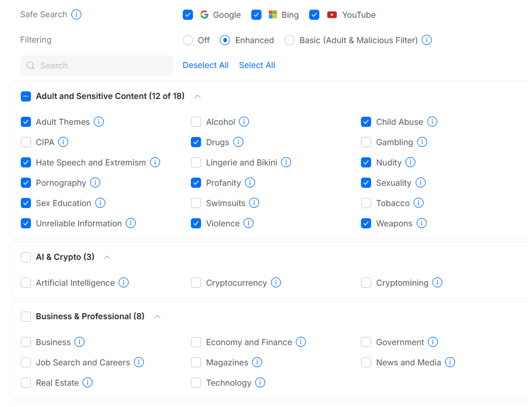 Granular Content Filtering: Filter and enforce safer searching practices for your company